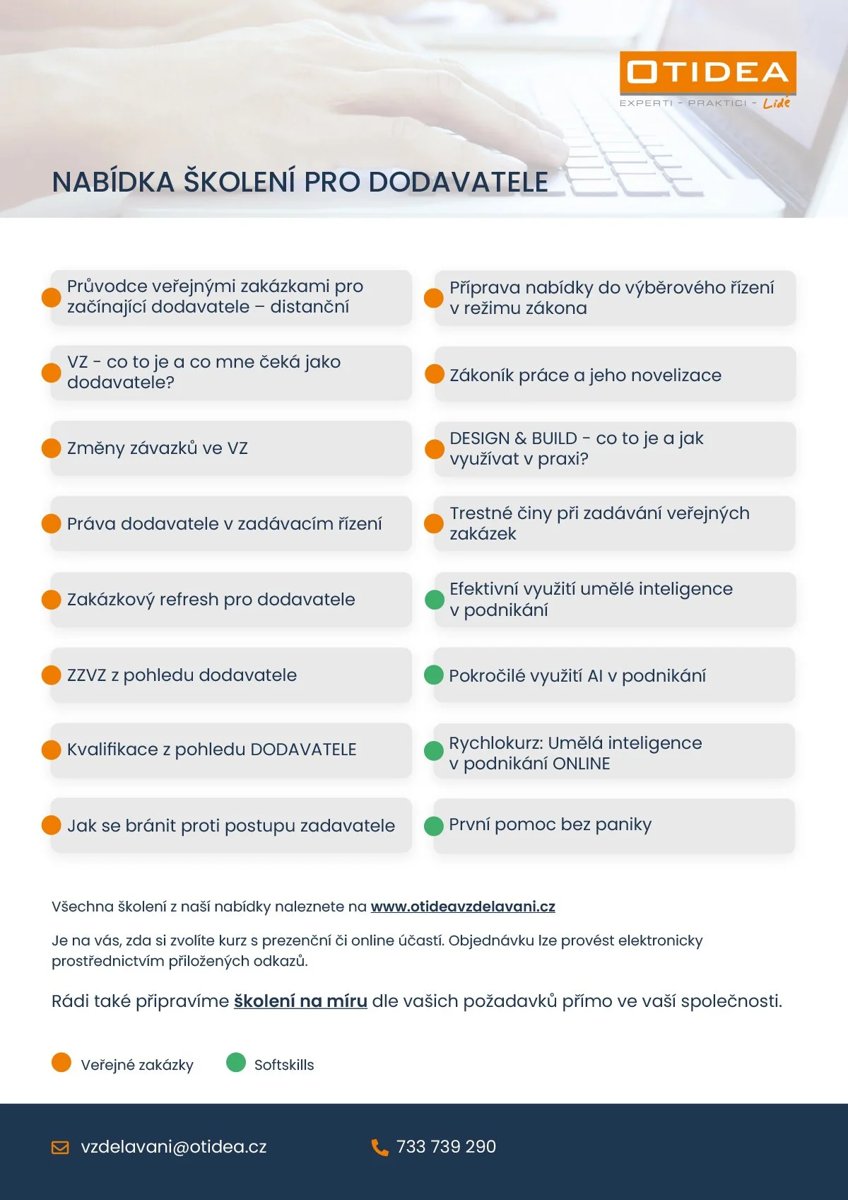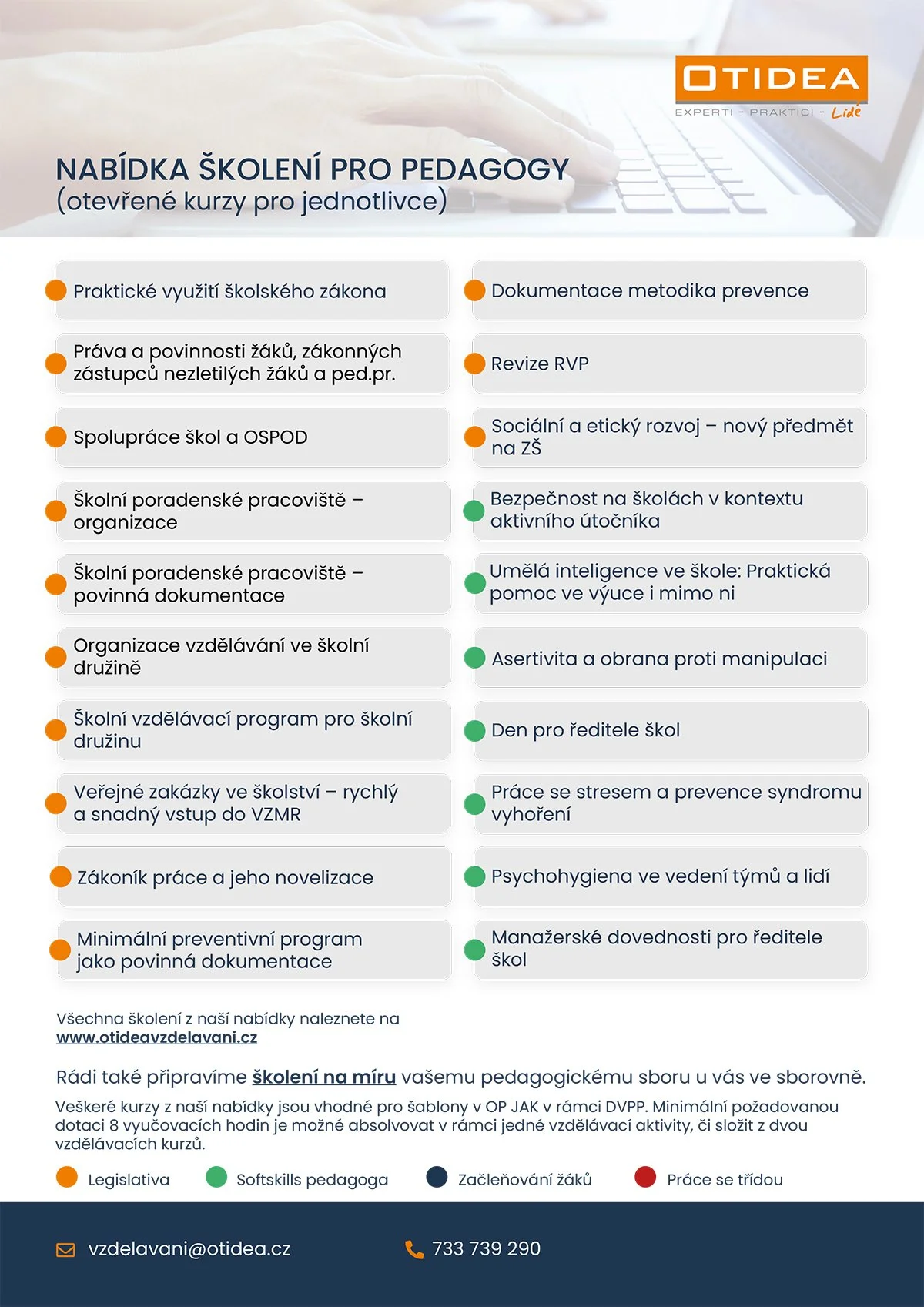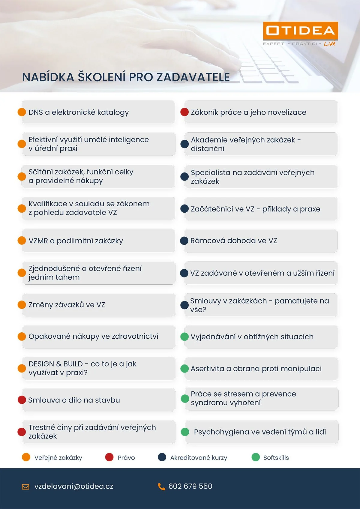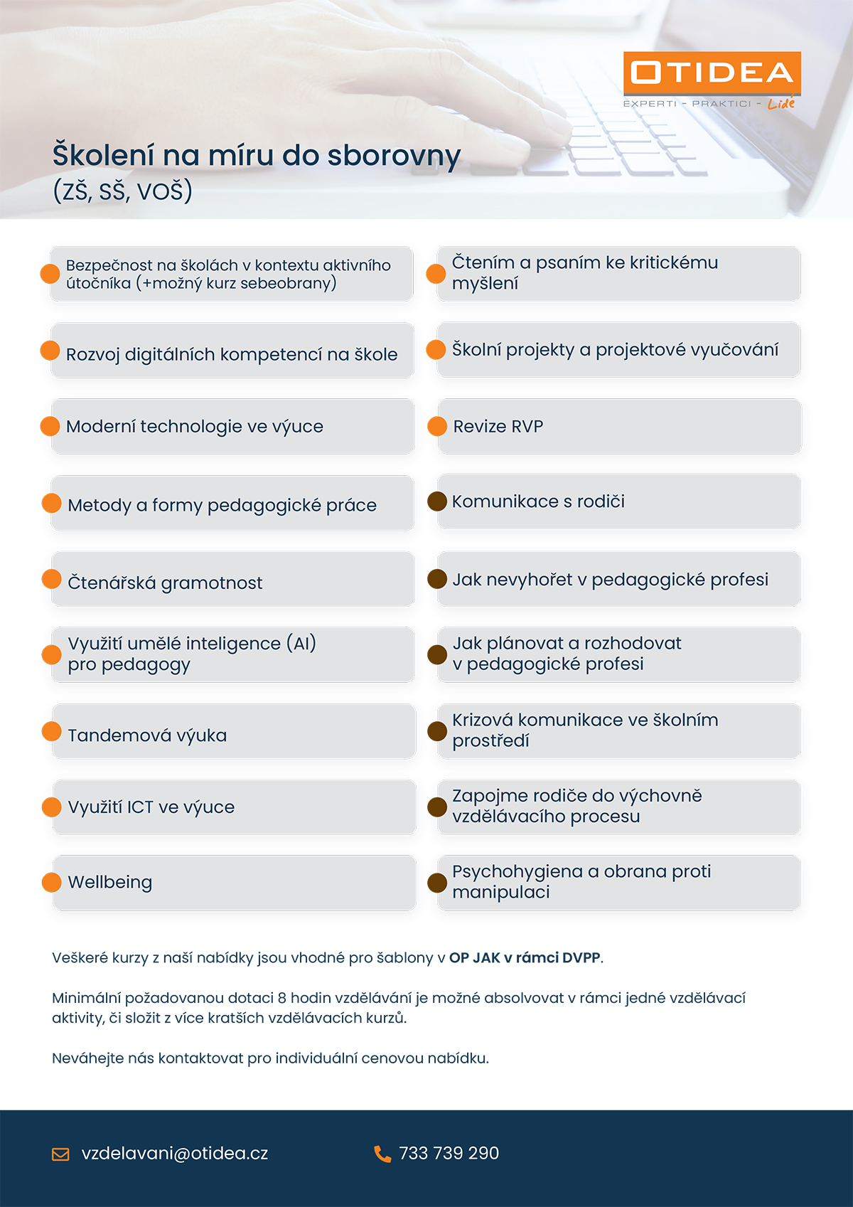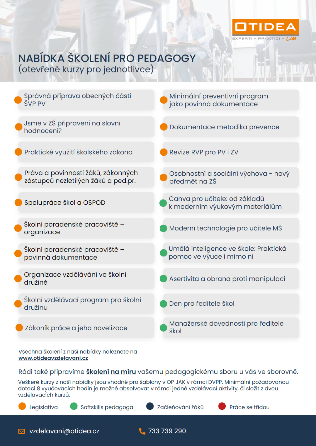 Katalog vzdělávání Nabídka pro pedagogy Školení na míru do sborovny(předškolní zařízení) Interaktivní a jedinečné školení pro ZUŠ Nabídka pro zadavatele Školení na míru do sborovny(ZŠ, SŠ, VOŠ) Školení na míru pro zadavatele Nabídka pro dodavatele Finanční gramotnost pro středoškoláky Základy pro život Školení na míru pro dodavatele